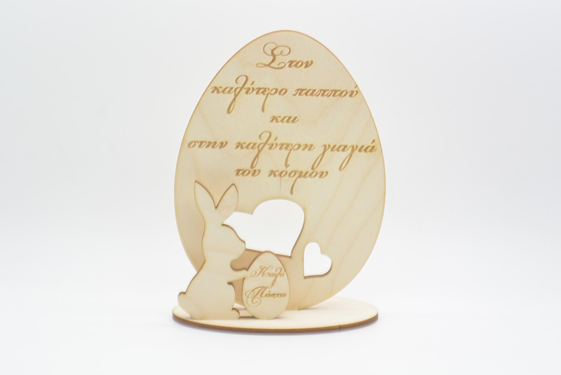 Ξύλινο Διακοσμητικό αυγό με λαγουδάκι καλό Πάσχα στην καλύτερη γιαγιά και παππού. Διάσταση 15 εκ.