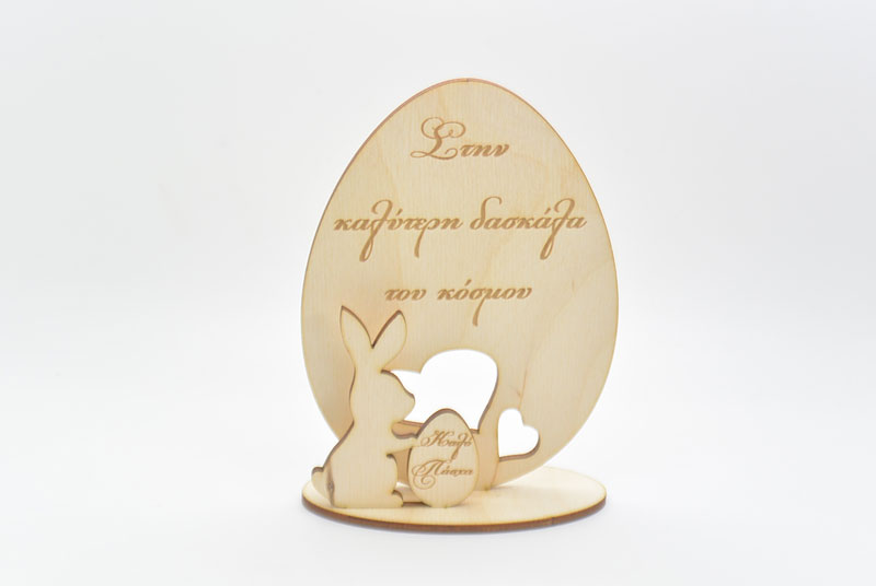 Ξύλινο Διακοσμητικό αυγό με λαγουδάκι καλό Πάσχα στην καλύτερη δασκάλα. Διάσταση 15 εκ.