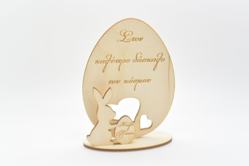Ξύλινο Διακοσμητικό αυγό με λαγουδάκι καλό Πάσχα στoν καλύτερo δάσκαλο. Διάσταση 15 εκ.