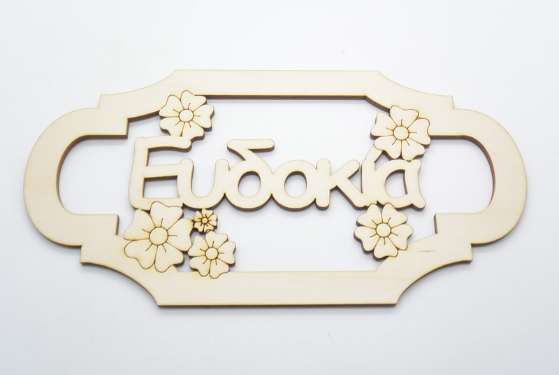 Ξύλινο διακοσμητικό κάδρο με το όνομα του παιδιού σας και λουλούδια. Διαστάσεις 22 x 11,2 εκ.