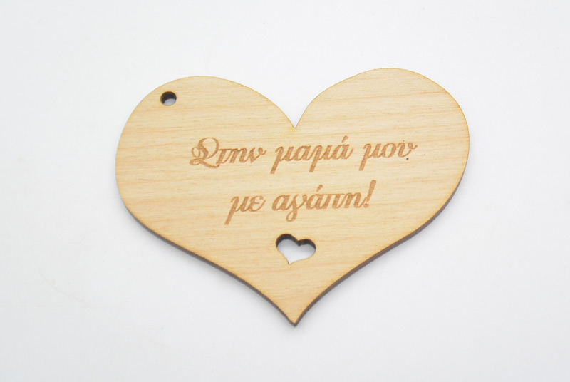 Ξύλινο διακοσμητικό καρδιά για την γιορτή της μητέρας. Μπορεί να γίνει μπρελόκ και να επιλέξετε το κείμενο που θα χαραχτεί. Διάσταση 7 x 5,3 εκ.