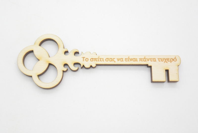 Ξύλινo Διακοσμητικό κλειδί με ευχή το σπίτι σας να είναι πάντα τυχερό. Διάσταση 10 x 3.5 cm.
