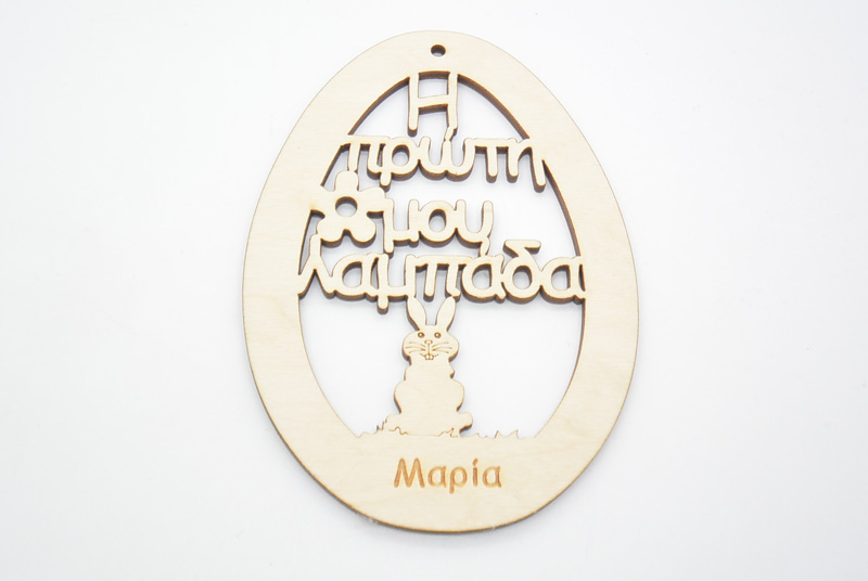 Ξύλινο Διακοσμητικό η πρώτη μου λαμπάδα αυγό με όνομα. Με διαστάσεις 15 x 10.6 εκ.