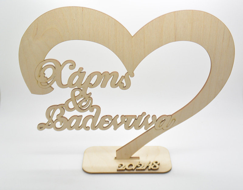 Ξύλινο Διακοσμητικό σταντ καρδιά με τα ονόματα του ζευγαριού. Διάσταση 30 x 25 cm.