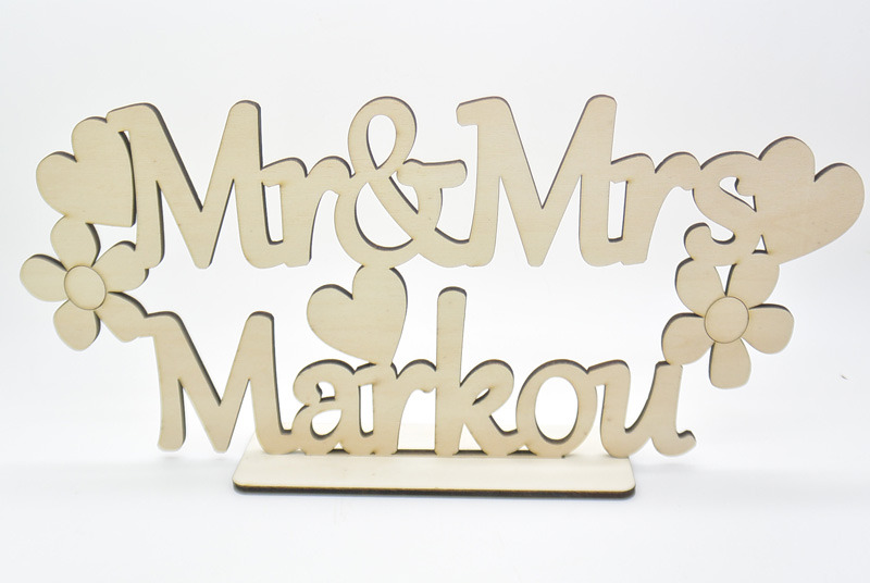 Ξύλινο Διακοσμητικό σταντ mr & mrs με όνομα της επιλογής σας. Με διαστάσεις 30 x 14 εκ. Σε ποσότητα άνω των 10 τεμαχίων παρέχεται έκπτωση.