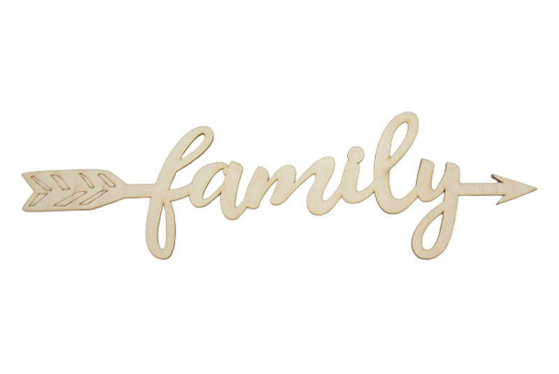Ξύλινο Διακοσμητικό βέλος μεγάλο με τη φράση family με διάσταση 30 x 9 εκ.