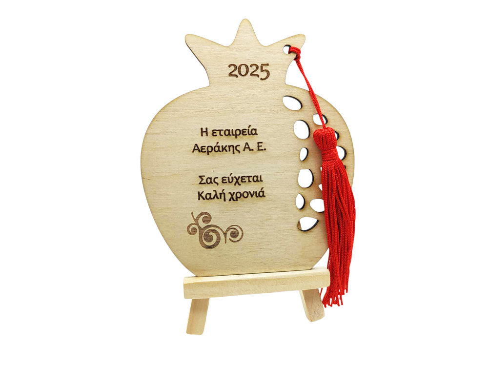 Ξύλινο Γούρι ρόδι με καβαλέτο και φούντα για συλλόγους με διαστάσεις 12 x 10 εκ και ύψος 15 εκ με το καβαλέτο. Μπορούμε να χαράξουμε το κείμενο της επιλογής σας, για επιχειρήσεις συλλόγους, συνδέσμους, σχολεία κτλ. Αποστέλλετε έτοιμο!!