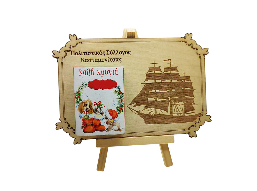 Ξύλινο Ημερολόγιο ποιημάτων με καβαλέτο και σχέδιο καράβι για συλλόγους με διαστάσεις 16 x 11 εκ το ημερολόγιο και ύψος 14 εκ με το καβαλέτο. Μπορούμε να χαράξουμε το κείμενο της επιλογής σας, για επιχειρήσεις συλλόγους, συνδέσμους, σχολεία κτλ. Αποστέλλετε έτοιμο!!