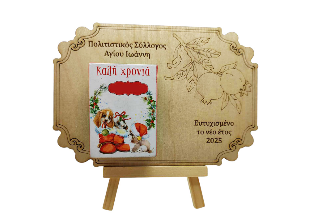 Ξύλινο Ημερολόγιο ποιημάτων με καβαλέτο και σχέδιο ρόδι με κλαδιά για συλλόγους με διαστάσεις 16 x 11 εκ το ημερολόγιο και ύψος 14 εκ με το καβαλέτο. Μπορούμε να χαράξουμε το κείμενο της επιλογής σας, για επιχειρήσεις συλλόγους, συνδέσμους, σχολεία κτλ. Αποστέλλετε έτοιμο!!