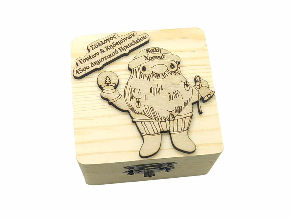 Ξύλινο κουτί άγιος Βασίλης δώρο στους μαθητές και της μαθήτριες σας μπορεί να γίνει και για σχολικούς συλλόγους. Διαστάσεις 8 x 8 x 5 εκ.