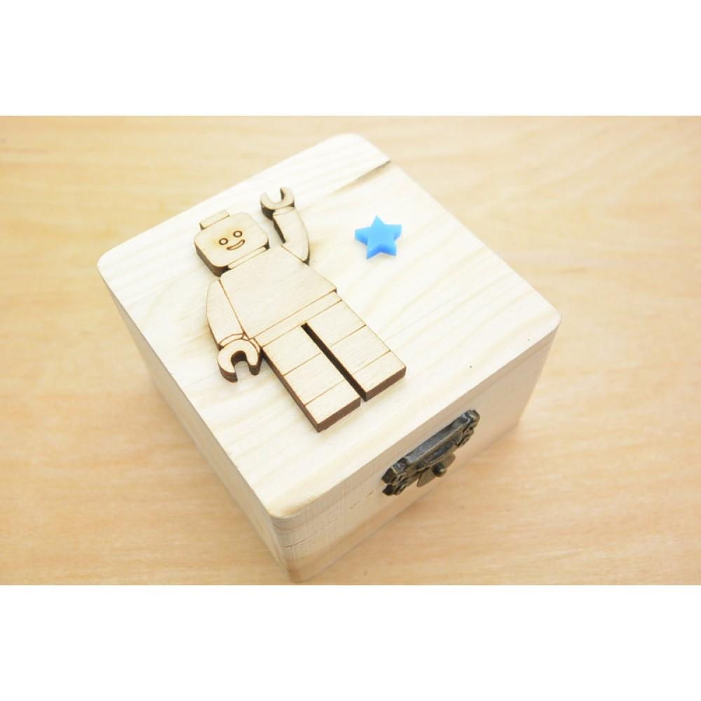 Ξύλινο κουτί lego με λεπτομέρειες plexiglass μπορείτε να επιλέξετε το χρώμα στις λεπτομέρειες plexiglass. Διάσταση κουτί 8 x 8 x 5 cm.