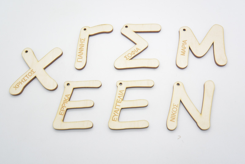 Ξύλινο Μονόγραμμα με το όνομα του παιδιού. Διάσταση 6 εκ. Μπορείτε να επιλέξετε διαφορετικά ονόματα.