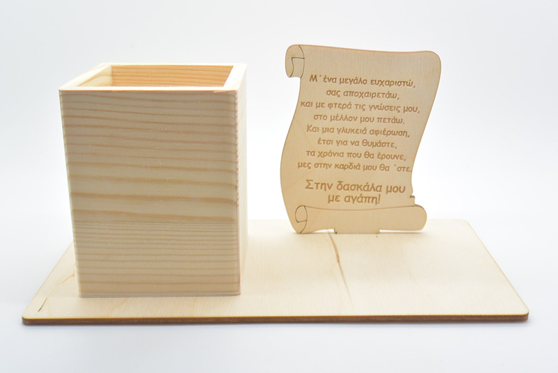 Αναμνηστικό σταντ με μολυβοθήκη δώρο για την δασκάλα με διαστάσεις 23,5 x 10 x 12 εκ. Μπορείτε να γράψετε ότι κείμενο θέλετε. Δίνεται με συσκευασία δώρου.