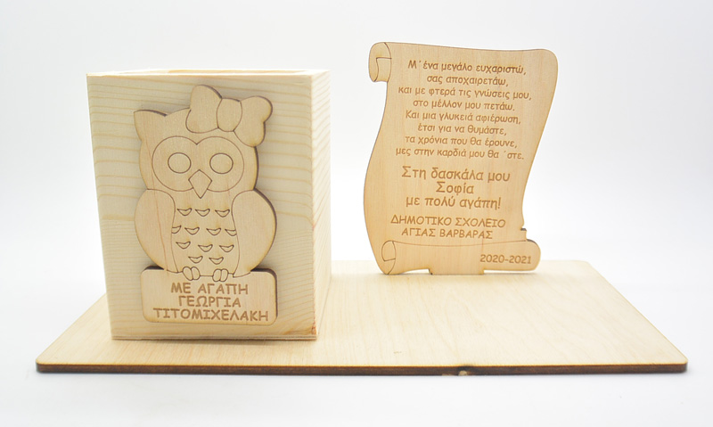Αναμνηστικό σταντ με μολυβοθήκη δώρο για την δασκάλα γίνεται και για δάσκαλο, με διαστάσεις 23,5 x 10 x 12 εκ. Μπορείτε να γράψετε ότι κείμενο θέλετε. Δίνεται με συσκευασία δώρου.