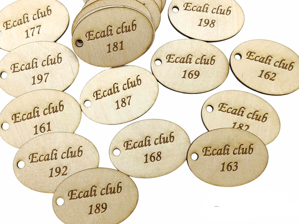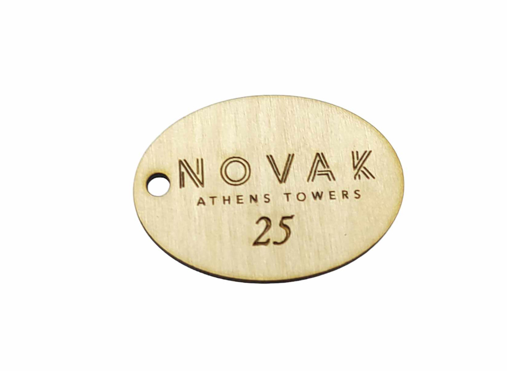 Ξύλινο Ταμπελάκι αριθμοί μάρκες γκαρνταρόμπας με την επωνυμία σας. Διαστάσεις 6 x 4,2 εκ και τρύπα 0,5 εκ μπορεί να γίνει ότι σχήμα θέλετε.