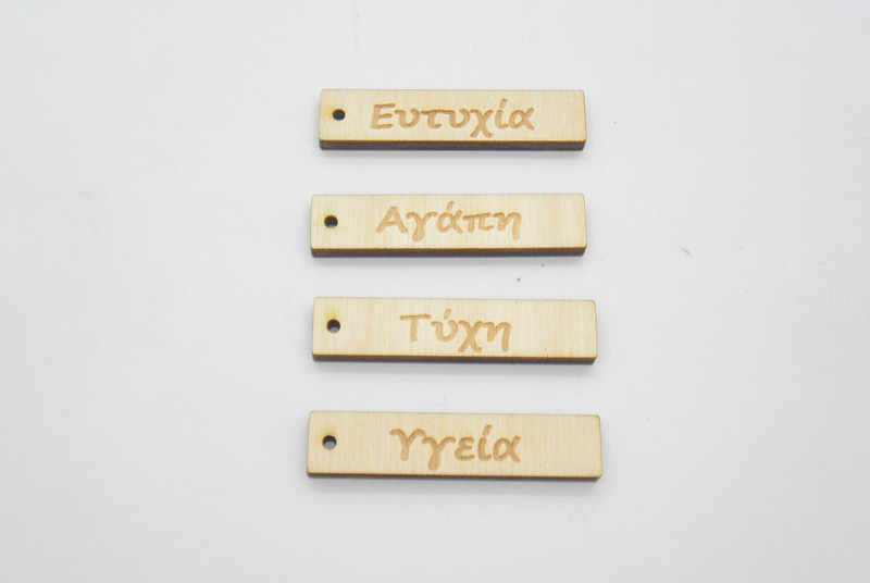 Ξύλινο ταμπελάκι διάφορες ευχές για βραχιολάκια κ.α. Διάσταση 5 x 1.2 εκ.