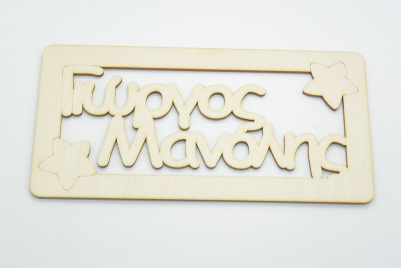 Ξύλινο ταμπελάκι με το όνομα Γιώργος Μανόλης. Διάσταση 20 x 10 εκ.