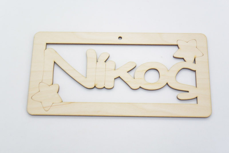 Ξύλινο ταμπελάκι με το όνομα Νίκος. Διάσταση 20 x 10 εκ.