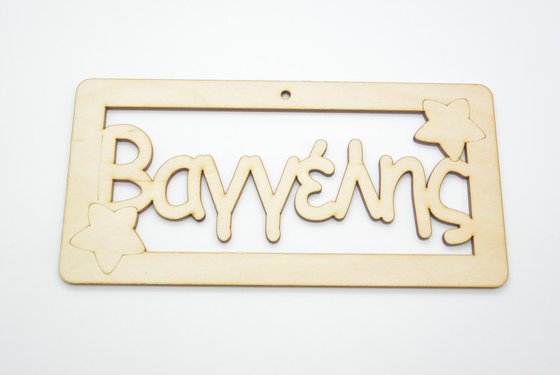 Ξύλινο ταμπελάκι με το όνομα Βαγγέλης. Διάσταση 20 x 10 εκ.