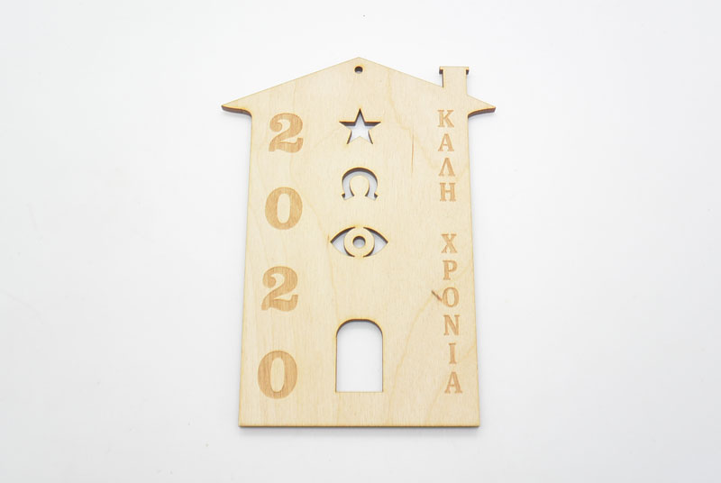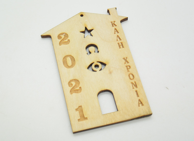 Ξύλινο Χριστουγεννιάτικο στολίδι σπιτάκι καλή χρονιά με διάσταση 10 x 7,4 εκ.