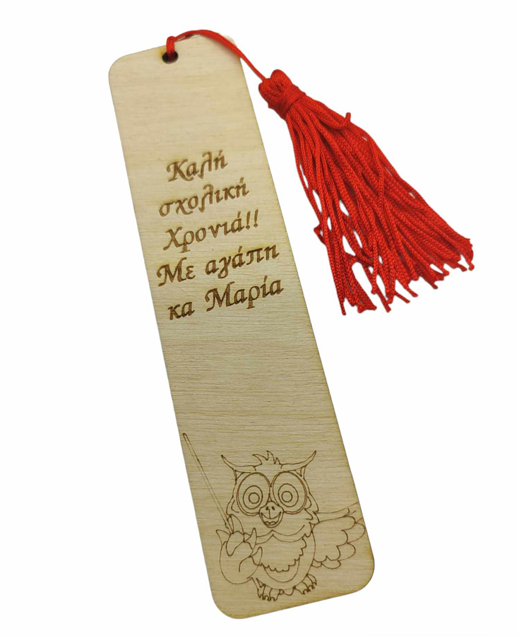 Ξύλινος Σελιδοδείκτης κουκουβάγια με φούντα για το ξεκίνημα της νέας σχολικής χρονιάς, καλωσόρισμα των μαθητών σας. Με αφιέρωση της επιλογής σας και διαστάσεις 16 x 4 εκ.