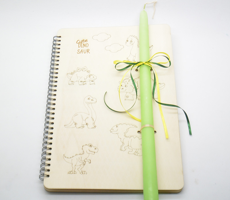 Πασχαλινή λαμπάδα ξύλινο σημειωματάριο δεινοσάυροι. Διαστάσεις 29.3cm x 19.6cm 20 ΣΕΛΙΔΕΣ.