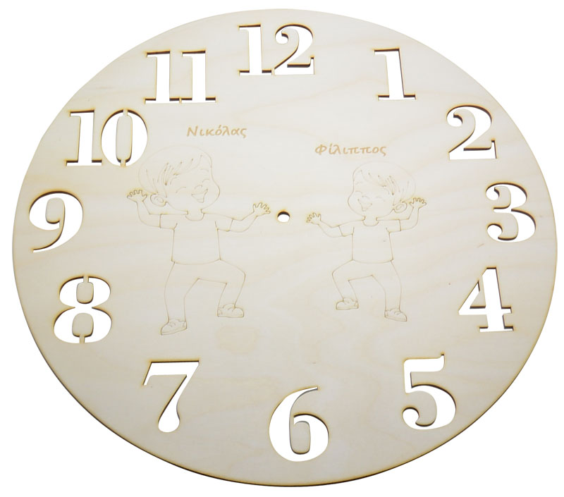 Ρολόι Τοίχου δίδυμα αγοράκια με διάσταση 38 εκ. Στην τιμή περιλαμβάνεται ο μηχανισμός ρολογιού.