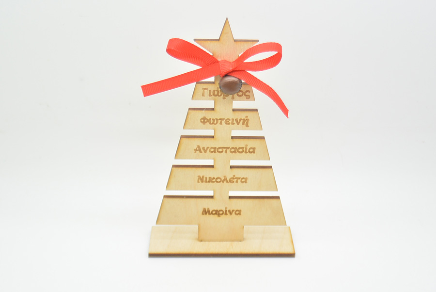 Χριστουγεννιάτικο Αναμνηστικό δεντράκι όπου είναι χαραγμένα τα ονόματα της οικογένειας. Διάσταση 20 εκ. Το κείμενο μπορεί να προσαρμοστεί σύμφωνα με τις δικές σας ανάγκες.