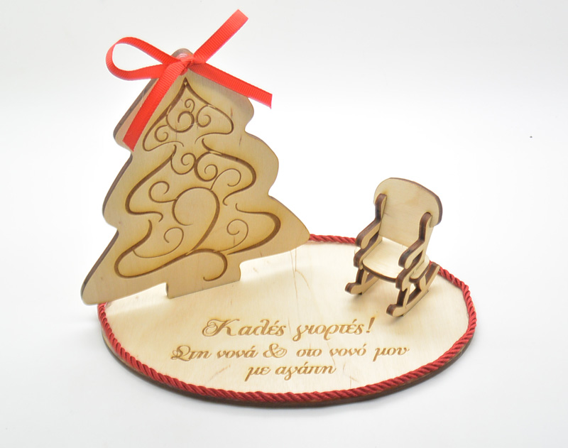 Χριστουγεννιάτικο διακοσμητικό δώρο με έλατο και κουνιστή Πολυθρόνα με διαστάσεις 20 x 15 εκ. Υπάρχει δυνατότητα να χαρακτή πάνω ότι ευχή και αφιέρωση θέλετε.