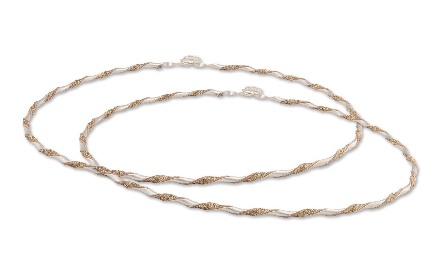 Στέφανα Γάμου ασημένια στριφτά με αμμοβολή και χρυσό δερματάκι. Η τιμή αφορά τα στέφανα, την στεφανοθήκη και 2 μπουτουνιέρες.