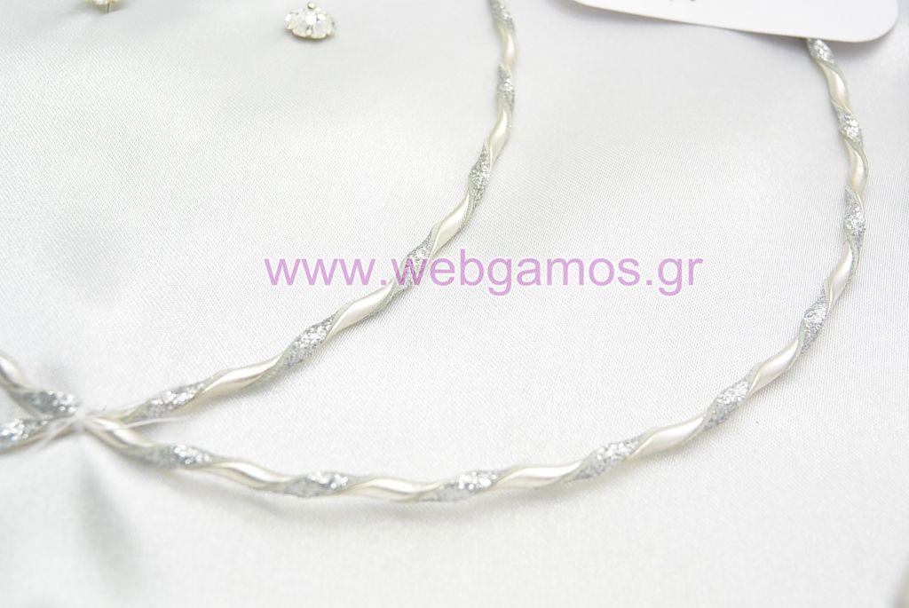 Στέφανα Γάμου ασημένια με αμμοβολή και ασημί δέρμα. Η τιμή αφορά τα στέφανα, την στεφανοθήκη και 2 μπουτουνιέρες.