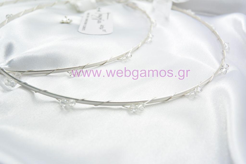 Στέφανα Γάμου ασημένια με τεχνική αμμοβολής και crystal swarovski. Η τιμή αφορά τα στέφανα, την στεφανοθήκη και 2 μπουτουνιέρες.
