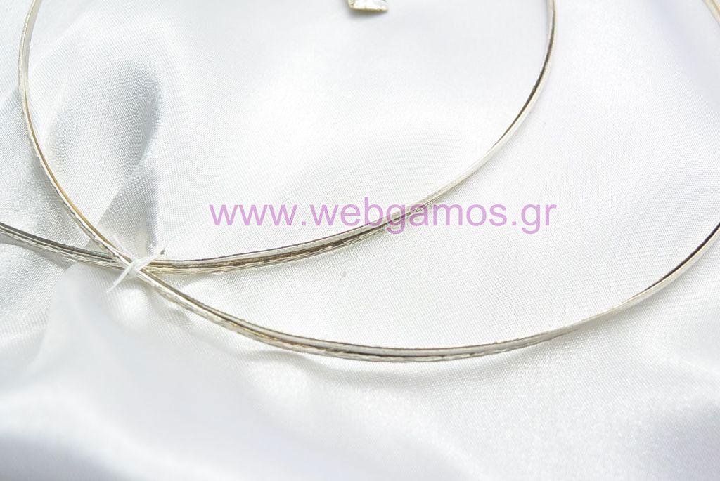 Στέφανα Γάμου επάργυρα γυαλιστερά σφυρίλατα. Η τιμή αφορά τα στέφανα, την στεφανοθήκη και 2 μπουτουνιέρες.
