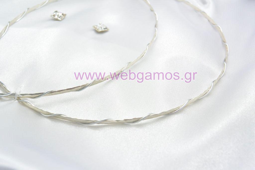 Στέφανα Γάμου επάργυρα σφυρίλατα με αμμοβολή και σύρμα. Η τιμή αφορά τα στέφανα, την στεφανοθήκη και 2 μπουτουνιέρες.