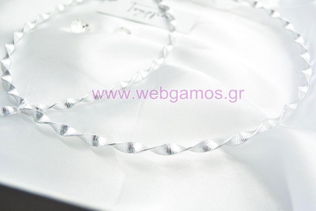Στέφανα Γάμου επάργυρα σφυρίλατα. Η τιμή αφορά τα στέφανα, την στεφανοθήκη και 2 μπουτουνιέρες.