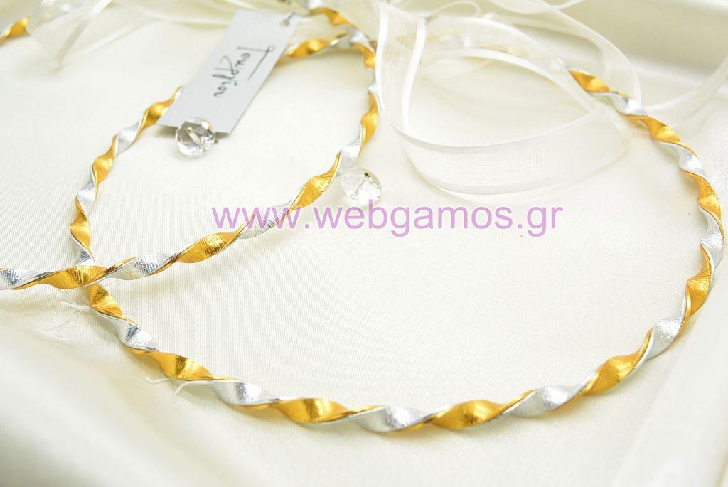 Στέφανα Γάμου επάργυρα σφυρίλατα. Η τιμή αφορά τα στέφανα, την στεφανοθήκη και 2 μπουτουνιέρες.