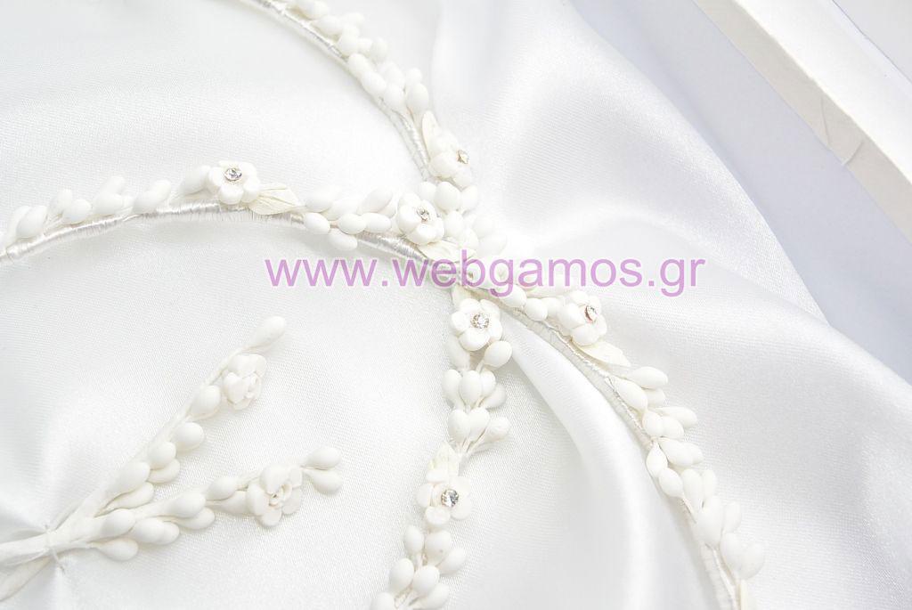 Στέφανα Γάμου πορσελάνινα με strass. Η τιμή αφορά τα στέφανα, την στεφανοθήκη και 2 μπουτουνιέρες.