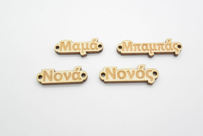 Σετ Ξύλινα Διακοσμητικά για μαρτυρικά με διαστάσεις μπαμπάς 4 x 1,2 εκ ,μαμά 3 x 1,2 εκ ,νονός 3,5 x 1,2 εκ και νονά 3 x 1,1 εκ. Σε συσκευασία 4 τεμάχια. Η τιμή αφορά τα 4 τεμάχια.