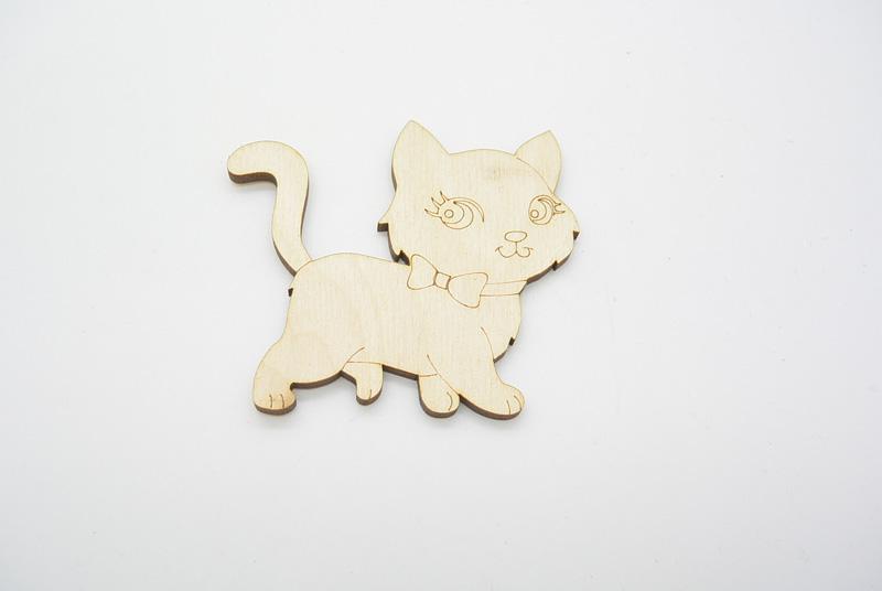 Ξύλινη Διακοσμητική γατούλα σε φυσικό άβαφο με διάσταση 6 x 6.8 εκ. Συσκευασία 50 τεμαχίων. Η τιμή αφορά το τεμάχιο.
