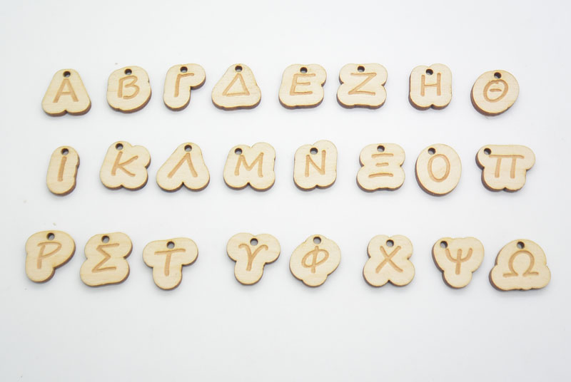 Ξύλινο Γράμμα για μαρτυρικά με διάσταση περίπου 1.9 εκ. Ελάχιστη ποσότητα 100 τεμάχια ανά γράμμα.