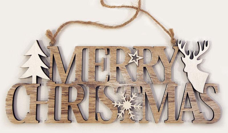 Ξύλινο Merry Christmas με διάσταση 11cm x 30cm.