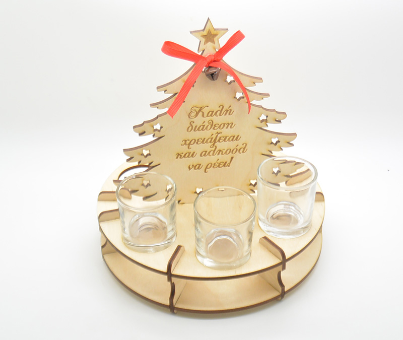 Χριστουγεννιάτικο δώρο βάση για 6 σφηνοπότηρα με διαστάσεις 23 x 20 εκ. Υπάρχει δυνατότητα να χαρακτή πάνω ότι ευχή θέλετε.