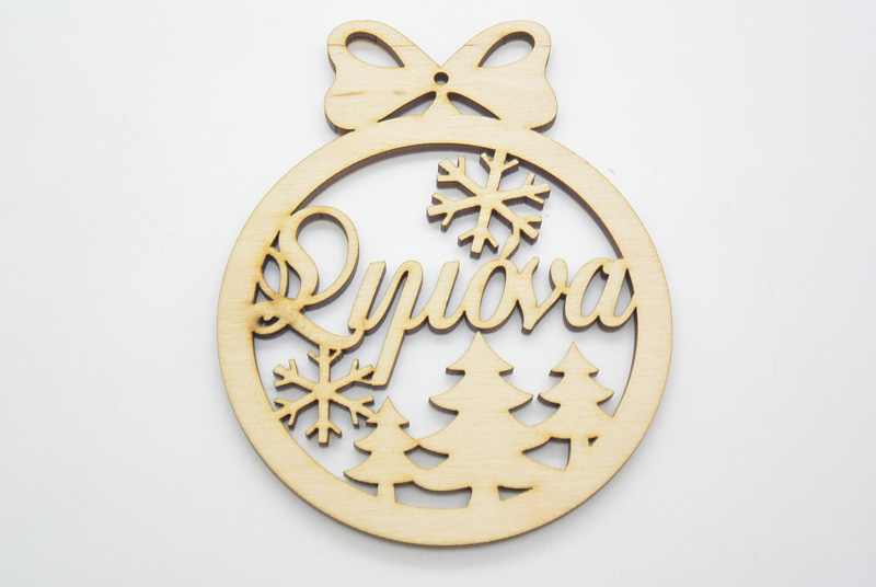 Χριστουγεννιάτικο Στολίδι με όνομα της επιλογής σας χιονονιφάδες και δεντράκια. Διάσταση 12 εκ.